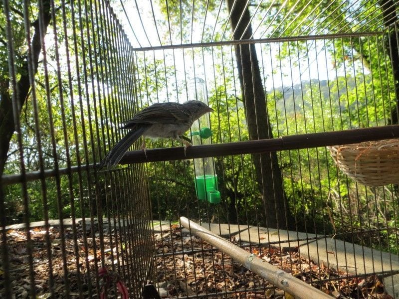 Empezamos a colocar su jaula en el exterior para que notase el viento, el sol y a otros pájaros. Esto es importante para la socialización y el entrenamiento. Otros pájaros podían acercarse a los comederos e interactuar con ella, y ella podía verles y aprender sus canciones.