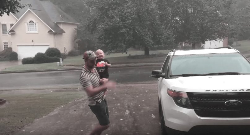 Indescriptible reacción de un bebé cuando ve la lluvia por primera vez