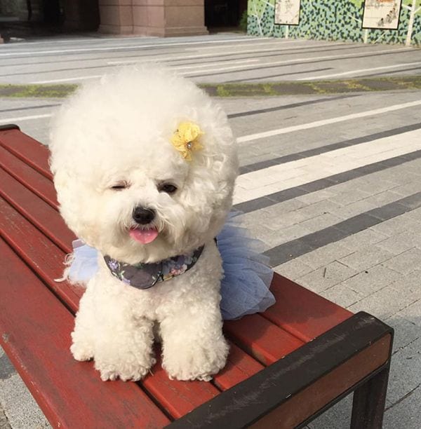 Con un sencillo corte de pelo en forma perfectamente redonda, esta cachorrita ha pasado a ser famosa en Instagram. Qué suerte poder hacer cosas así con tu pelo. Gracias a que lo tiene espeso y rizado.